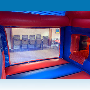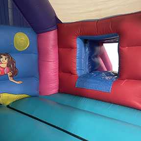 Note: The meshed sides on this castle combo make it lighter and easier to view children playing.