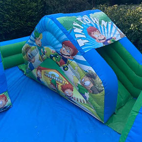 Consists of inflatable bouncy bed, slide, air jugglers, ball pool, rock and sensory blocks enclosure.